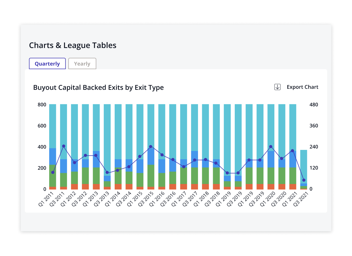Deepen your understanding of the industry with our data on all aspects of the market. Assess wider trends by gaining a clear perspective on present and historical alternatives information and identify areas of the market attracting interest.